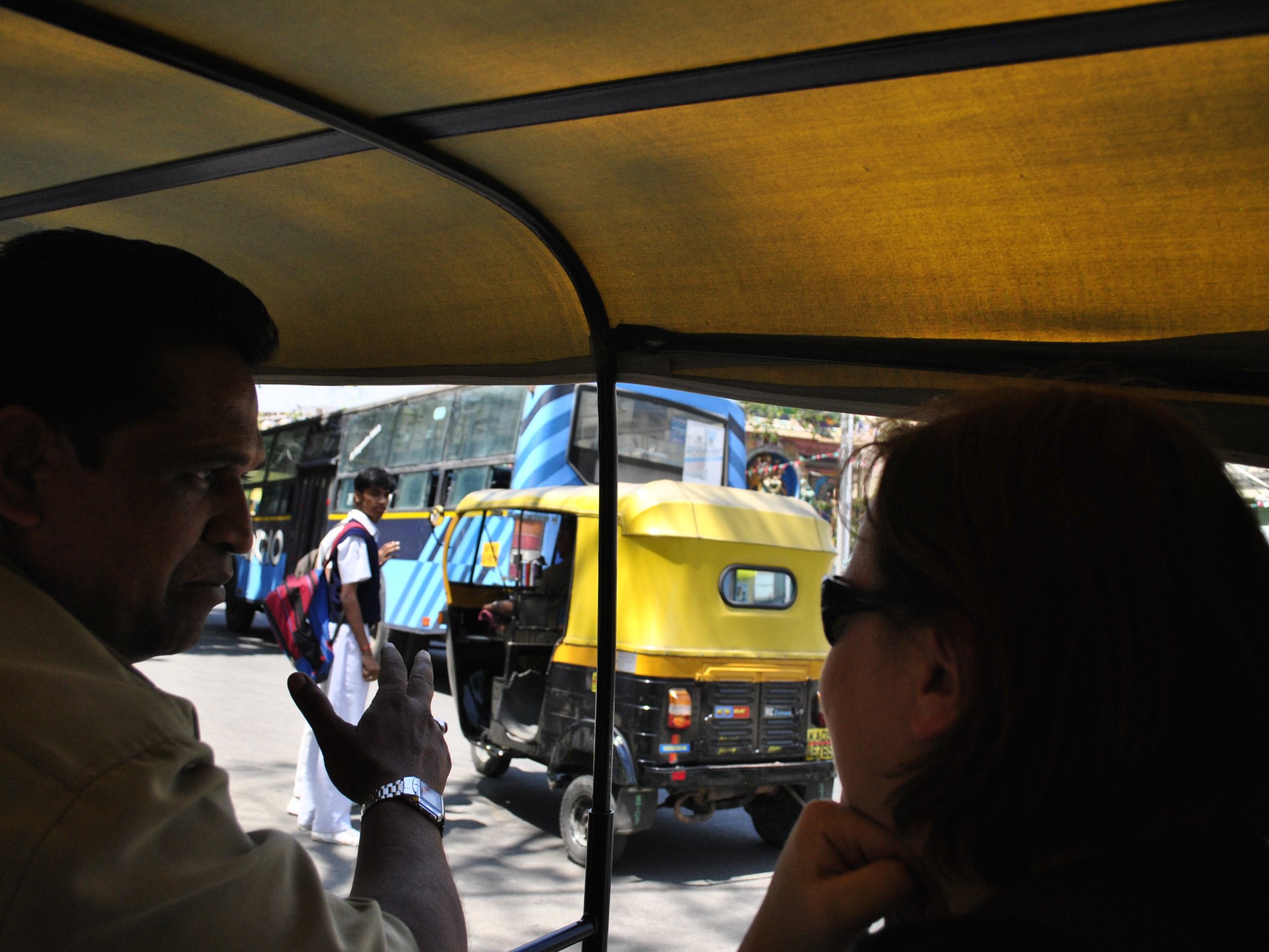 – „Spójrzcie na Parlament, a ten budynek obok to Administracja Rządowa. Mają tu biura wiceministrowie i ich urzednicy, do których przyjeżdżaja interesanci z całej Karnataki. Widzicie te tłumy przy wejściu? Niektórzy przyjechali naprawdę z daleka po to, żeby dostac dokument z pieczatką – zgodę na drogie leczenie dla krewnego czy przyjęcie dziecka do rządowej szkoły.”