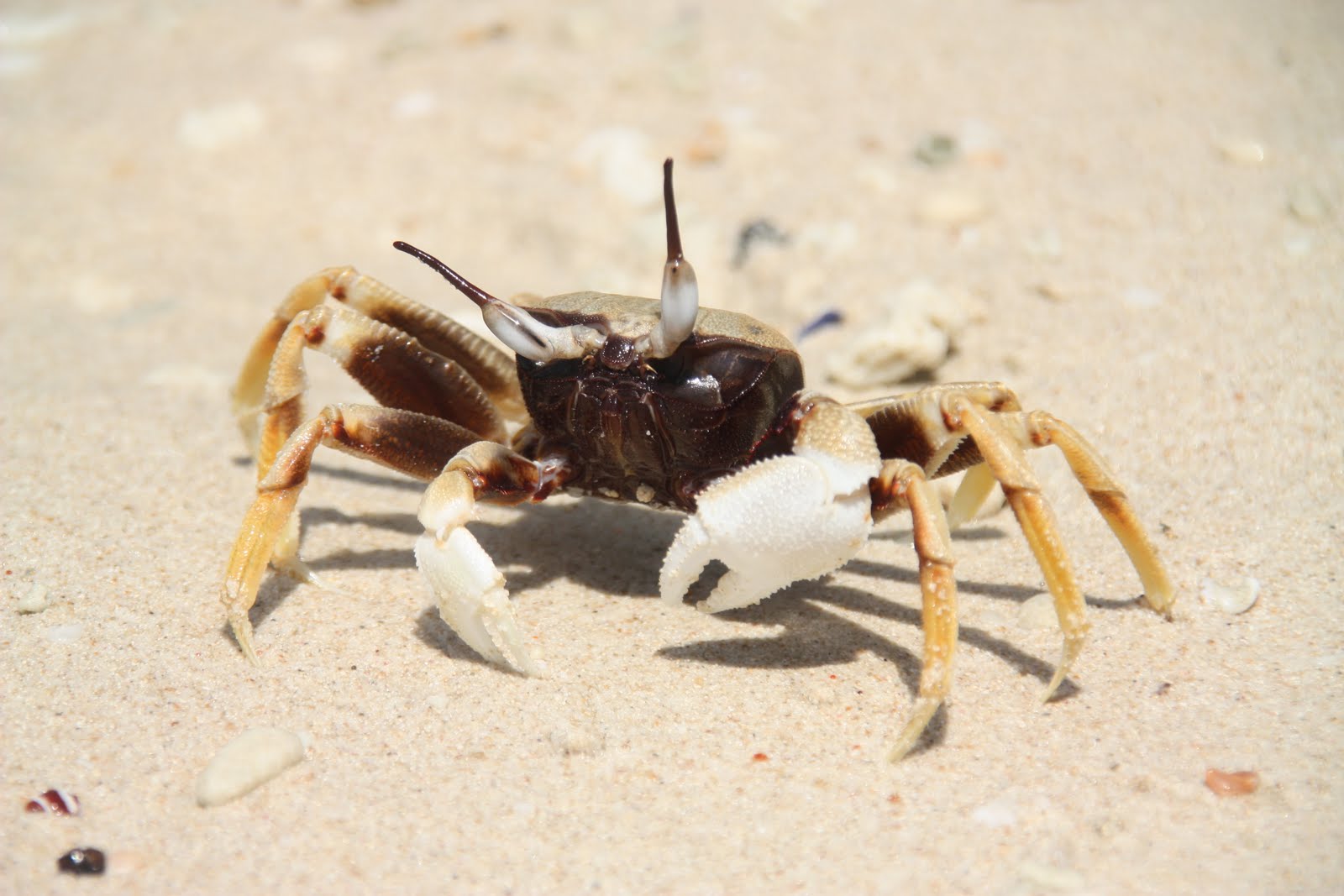 Nic z tego, za mała – krabik wciska odwłok z powrotem do starej muszli i z wysiłkiem ciągnie ją jak najdalej od morza.