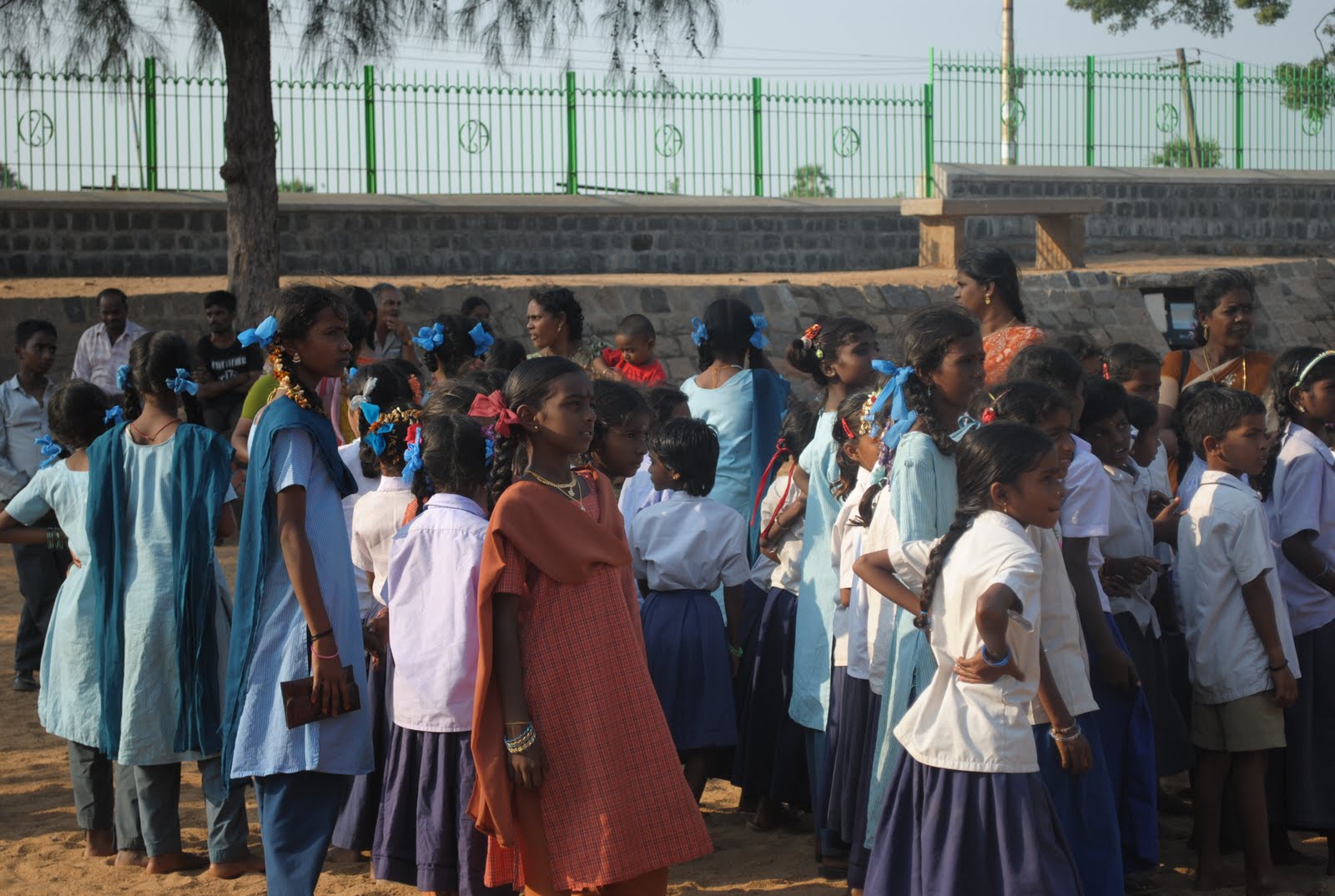Co rano, ze wszystkich stron dzieci schodzą się do szkoły; idą na piechodę, jeżdżą school busami, małe grupki dowożone są rikszami. Dzieci wyprawiane są do szkoły w schludnych, czystych strojach.