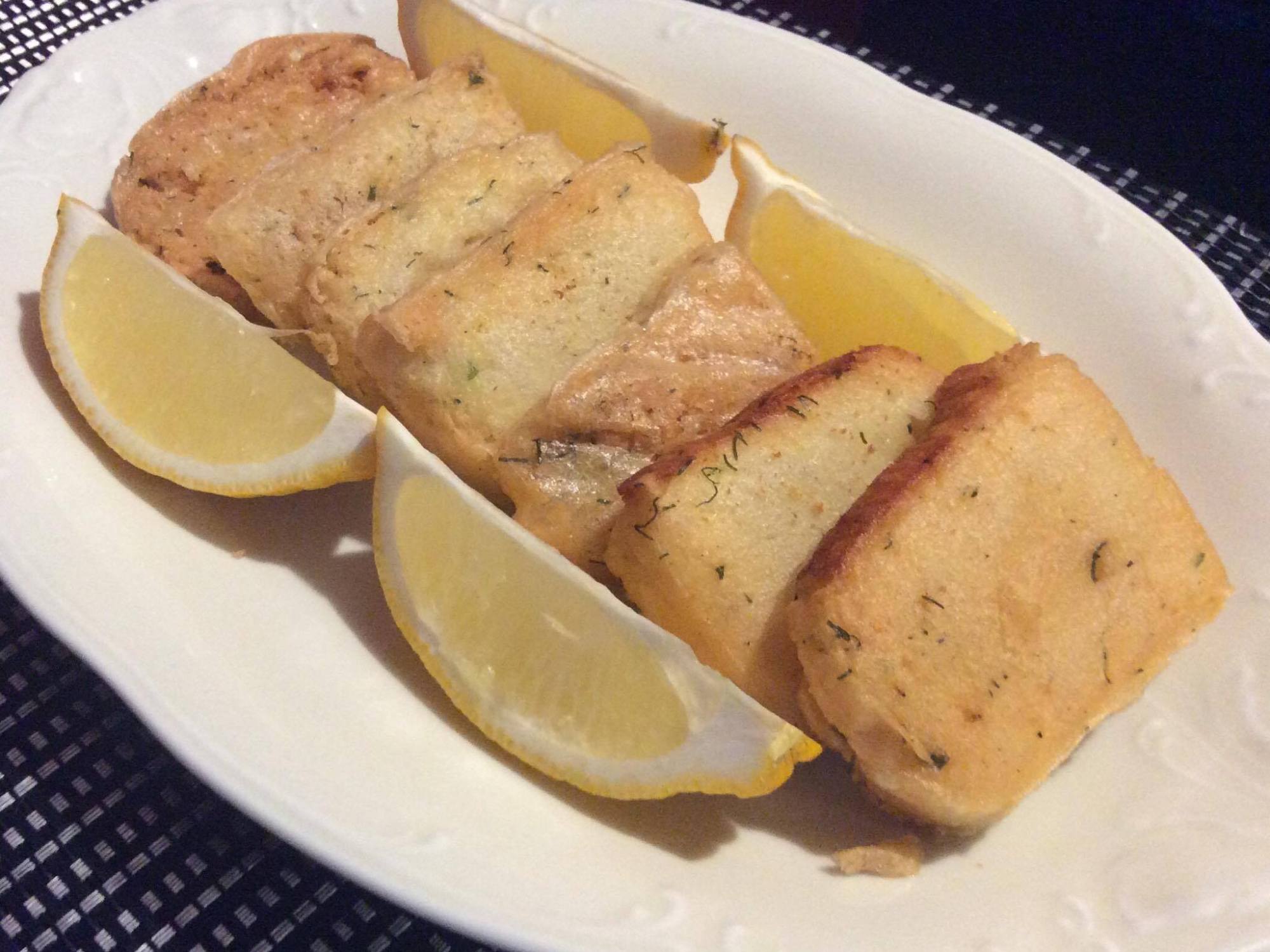 Po usmażeniu odsącz resztkę oleju na ręczniku papierowym, układaj na półmisku i udekoruj ćwiartkami cytryny.